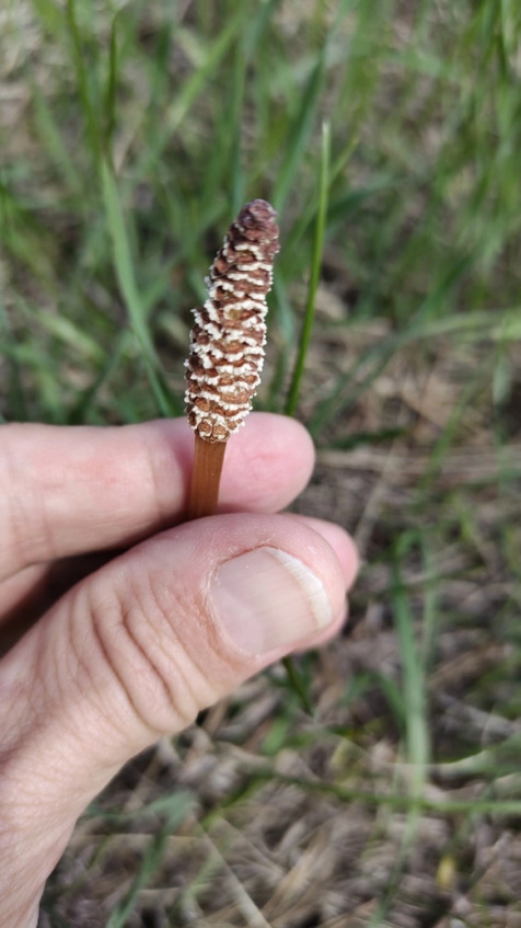 Весенняя – особая – форма Хвоща полевого. Он выводит свинец из организма; по весне его раньше активно ели, ведь именно в это время года он здорово насыщает организм особо нужными биоэлементами; кроме того, запасались его клубеньками.