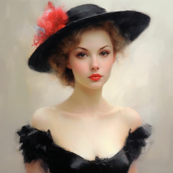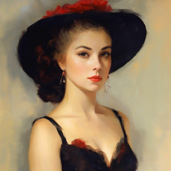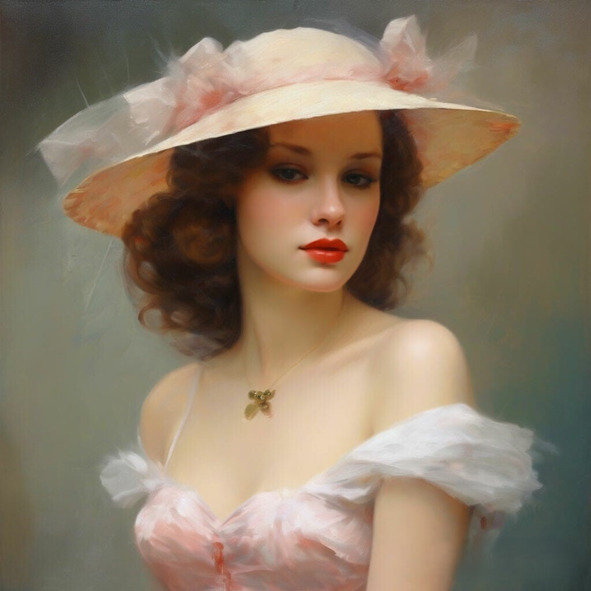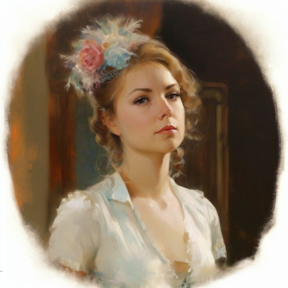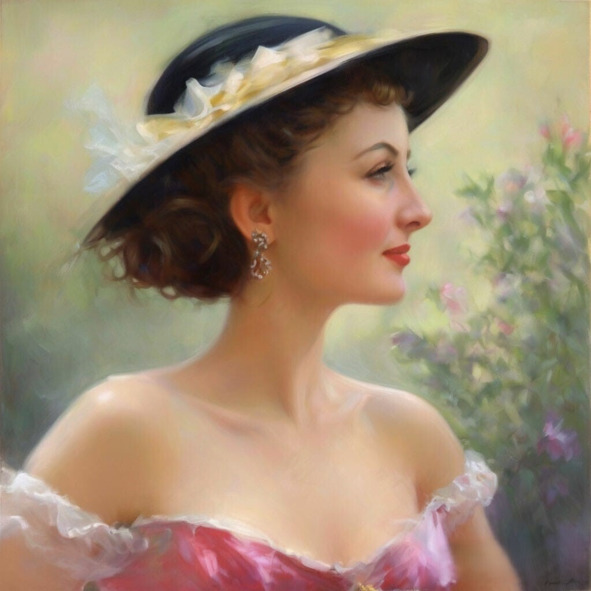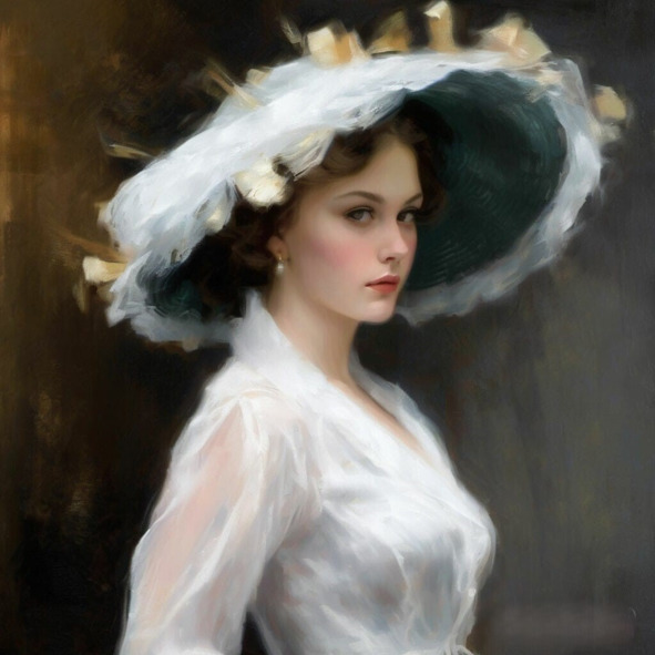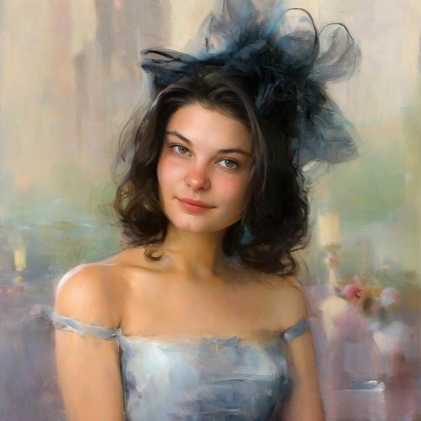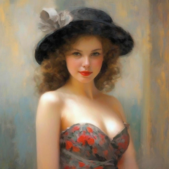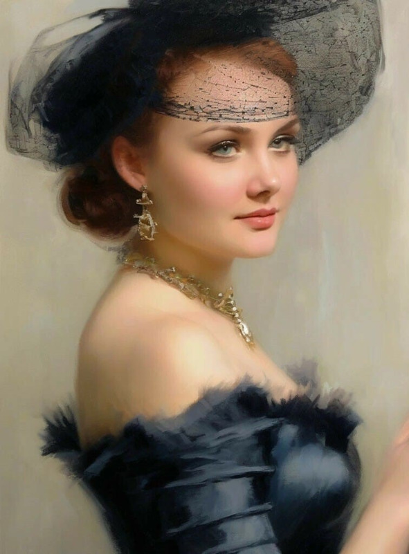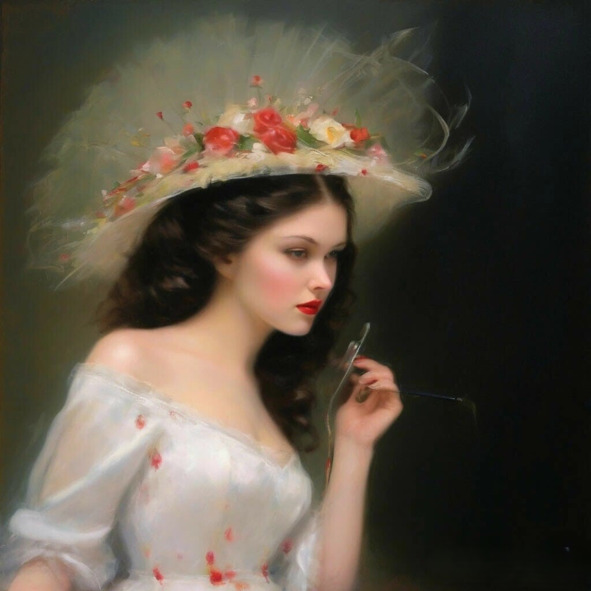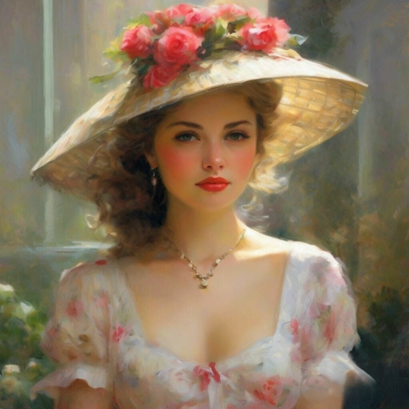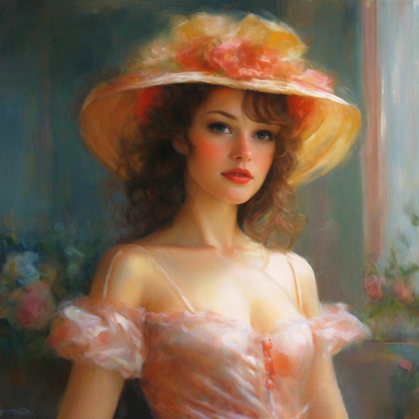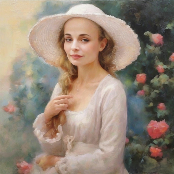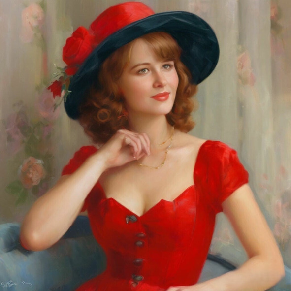 В первом из этих стилей «особые приметы», а, точнее – украшения портретов – это цветы и шляпки. Во втором – классические портреты, здесь много грудных и поясных портретов. Третий – тоже классический, красивый, яркий женский портрет.