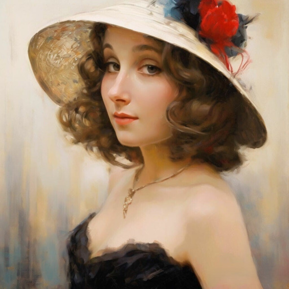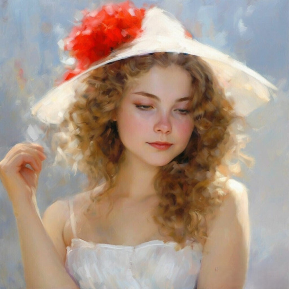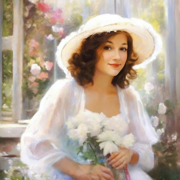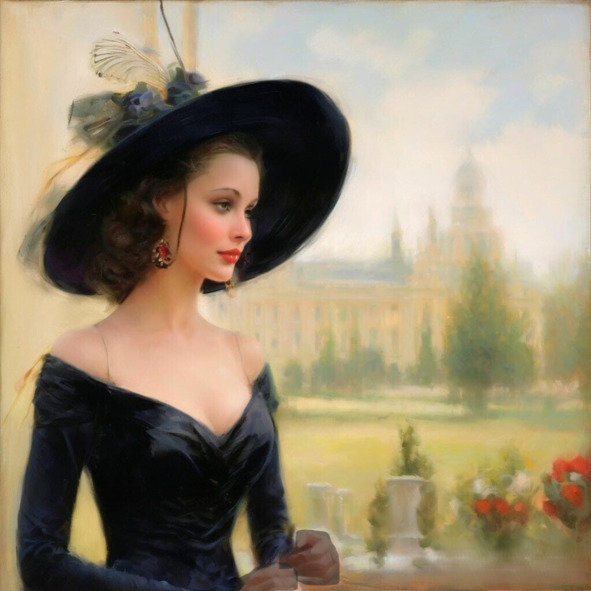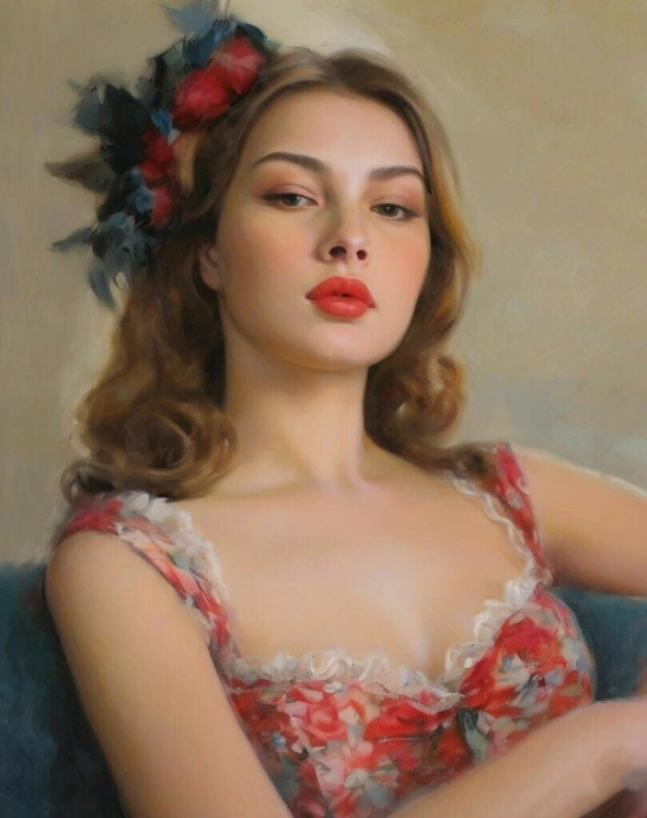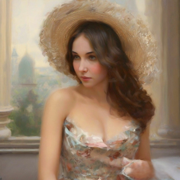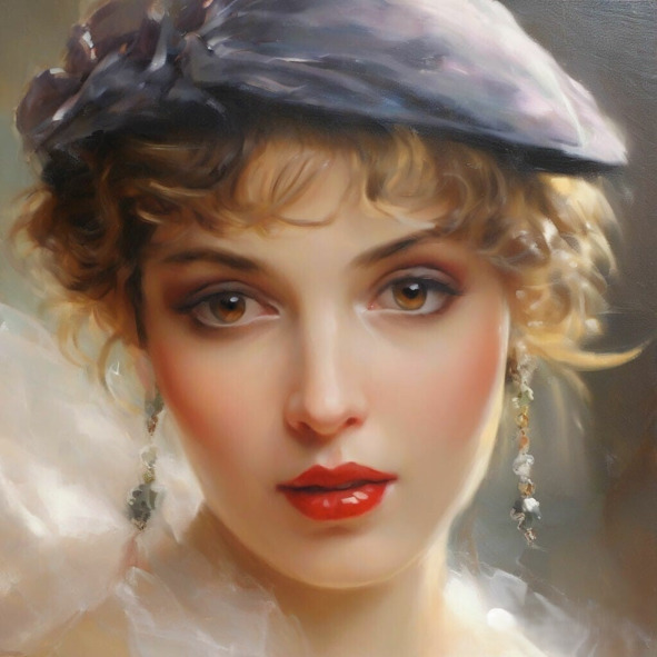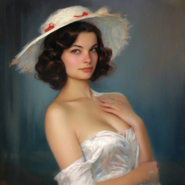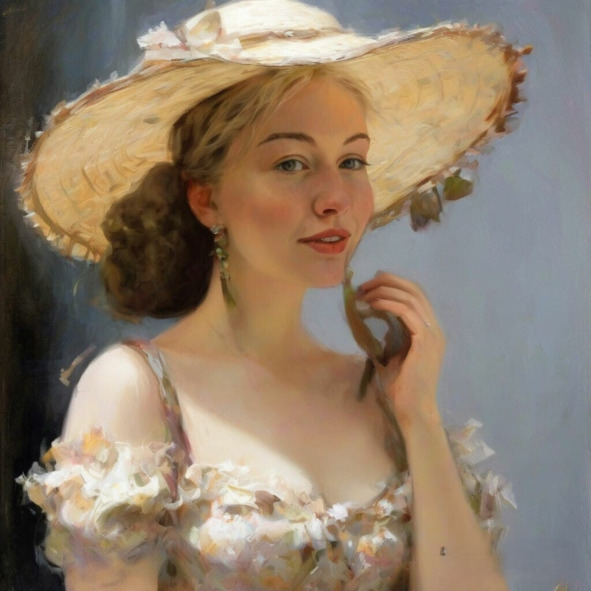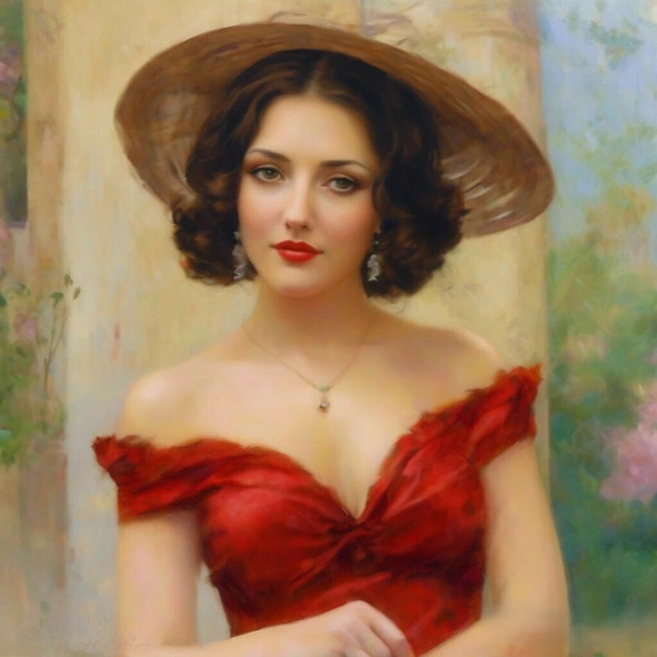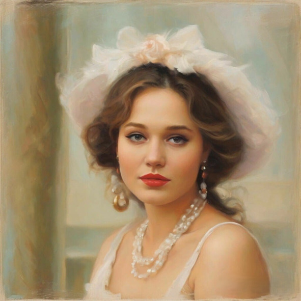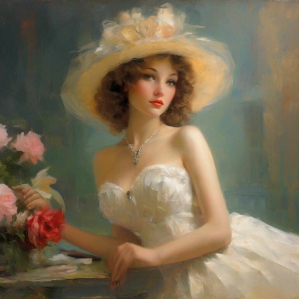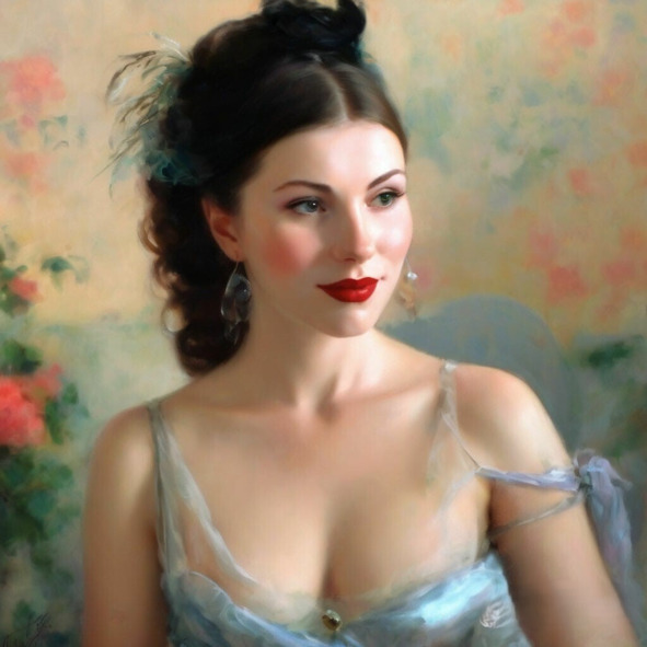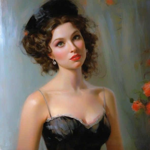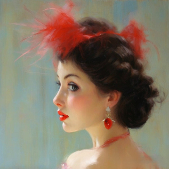 В первом из этих стилей «особые приметы», а, точнее – украшения портретов – это цветы и шляпки. Во втором – классические портреты, здесь много грудных и поясных портретов. Третий – тоже классический, красивый, яркий женский портрет.