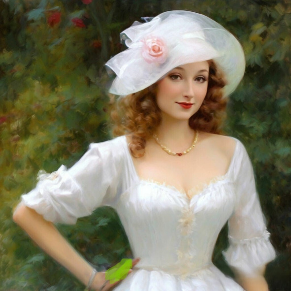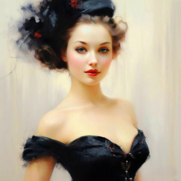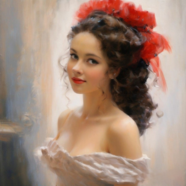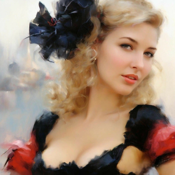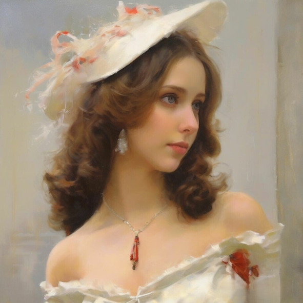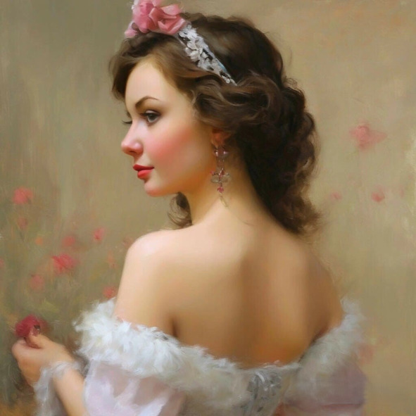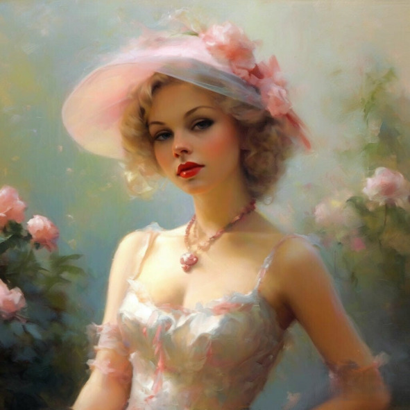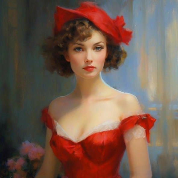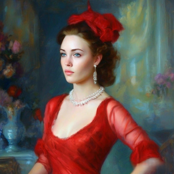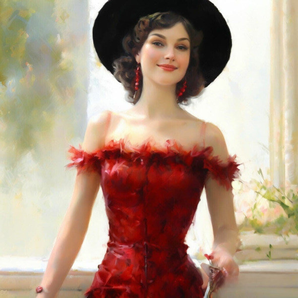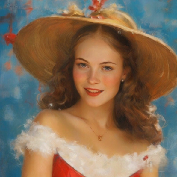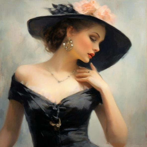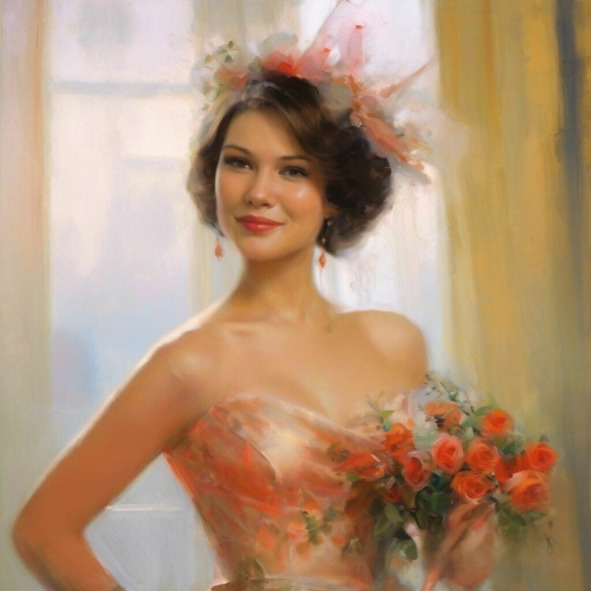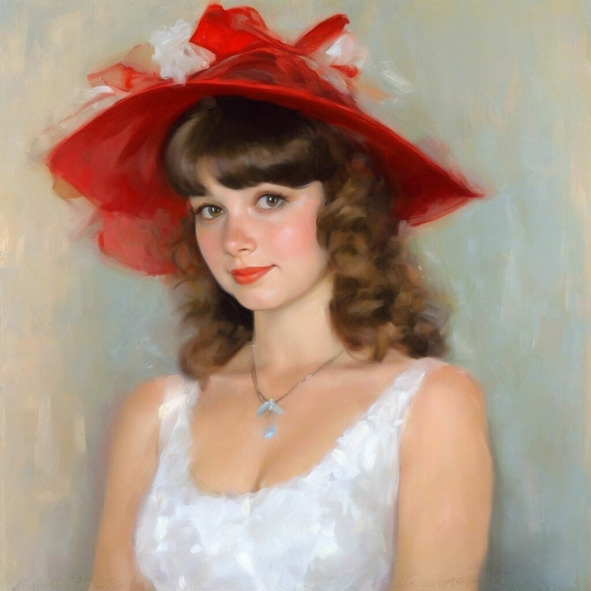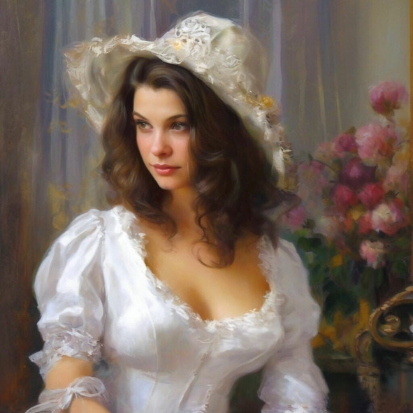 В первом из этих стилей «особые приметы», а, точнее – украшения портретов – это цветы и шляпки. Во втором – классические портреты, здесь много грудных и поясных портретов. Третий – тоже классический, красивый, яркий женский портрет.