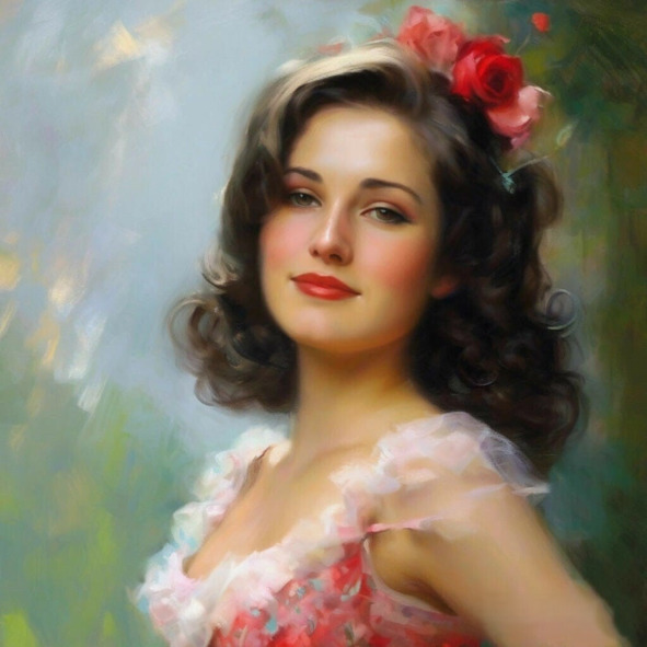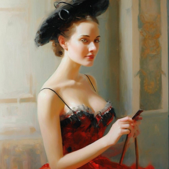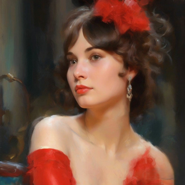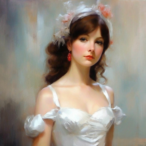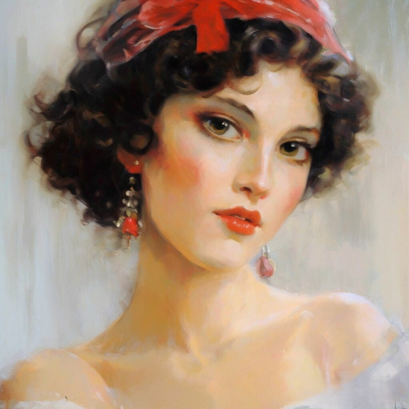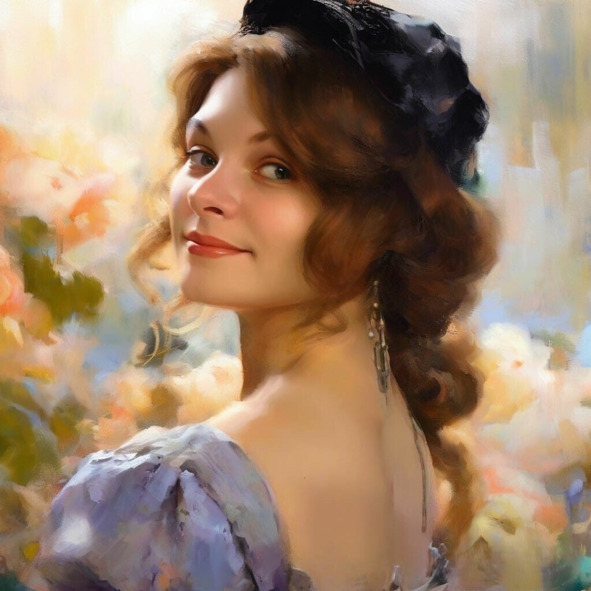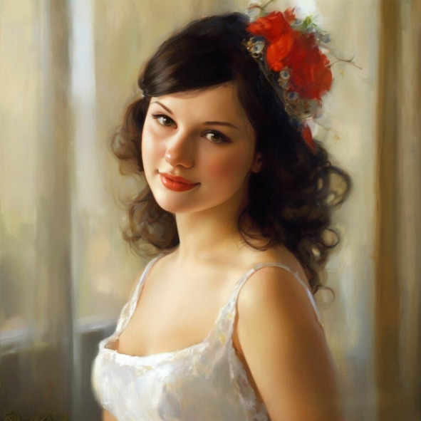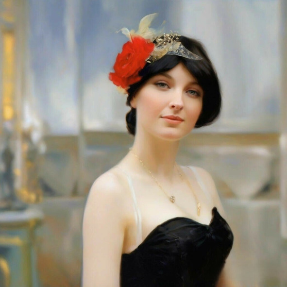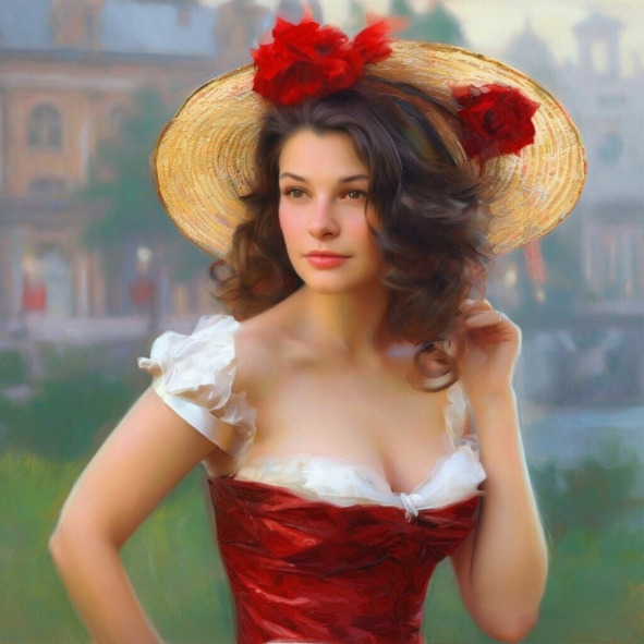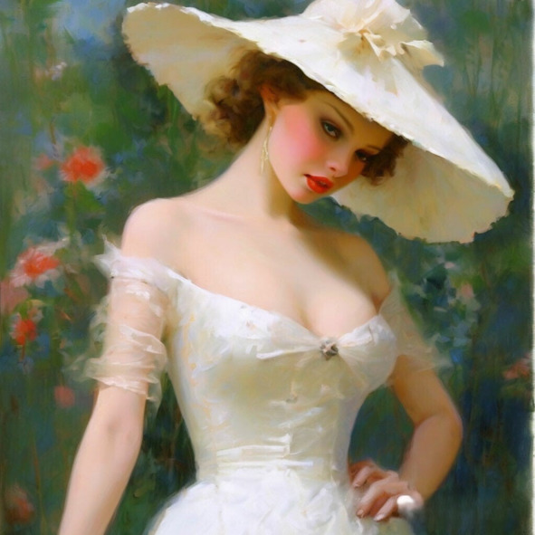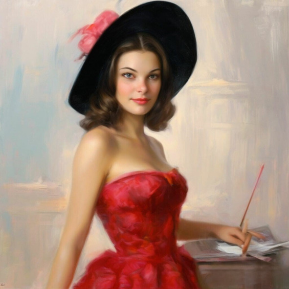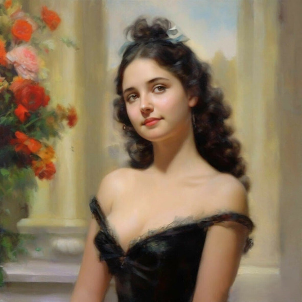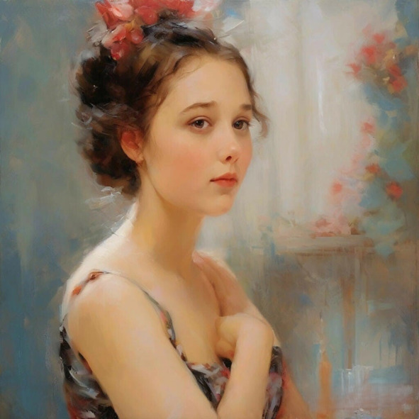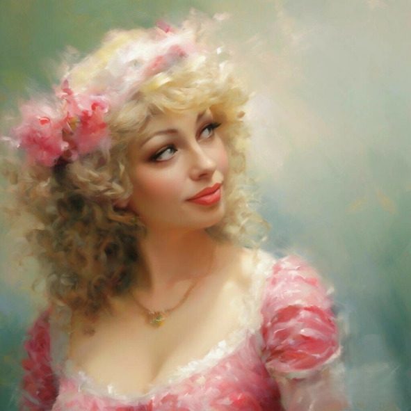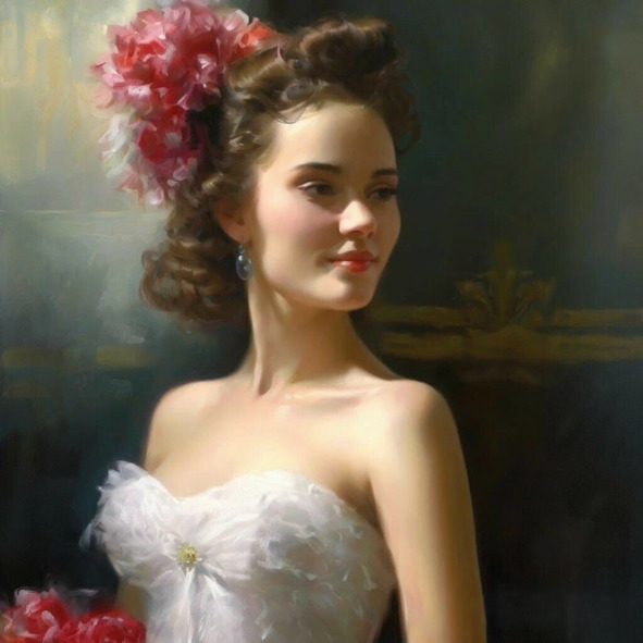 В первом из этих стилей «особые приметы», а, точнее – украшения портретов – это цветы и шляпки. Во втором – классические портреты, здесь много грудных и поясных портретов. Третий – тоже классический, красивый, яркий женский портрет.