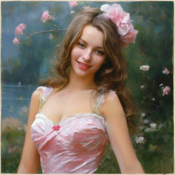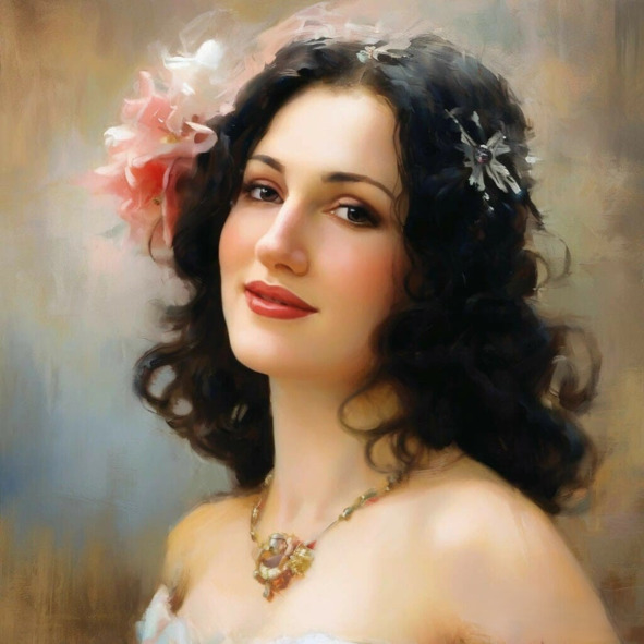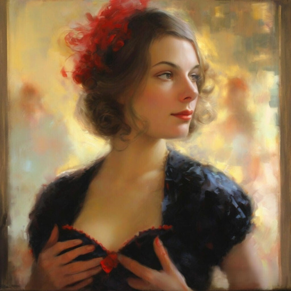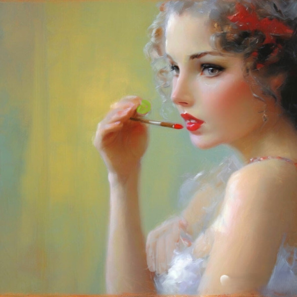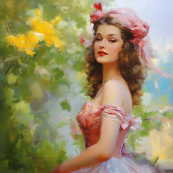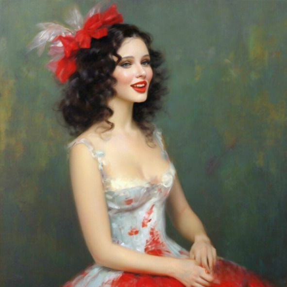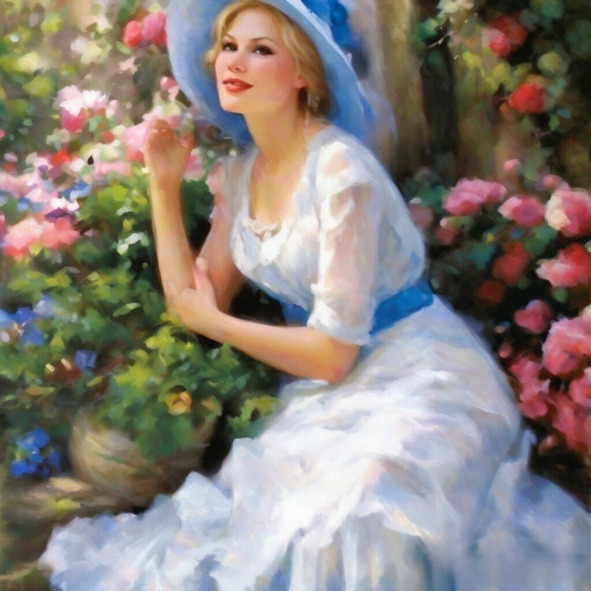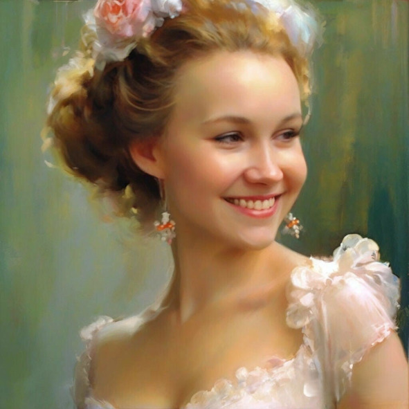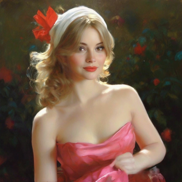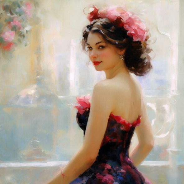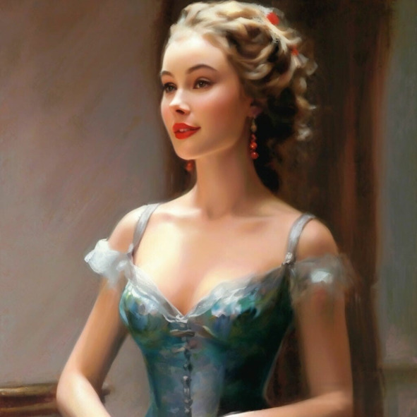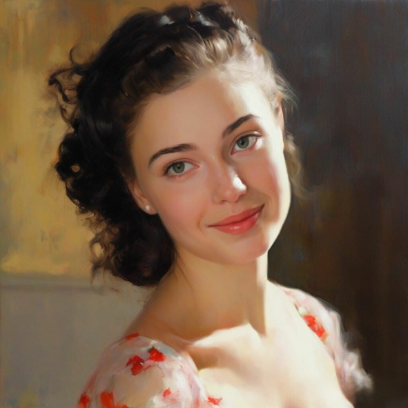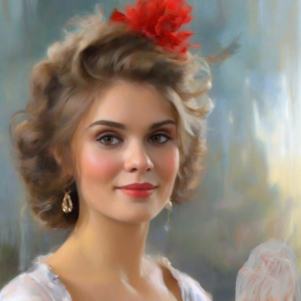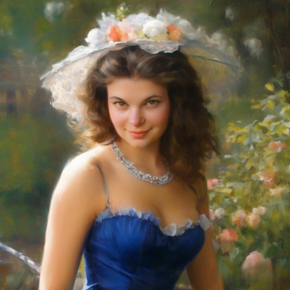В первом из этих стилей «особые приметы», а, точнее – украшения портретов – это цветы и шляпки. Во втором – классические портреты, здесь много грудных и поясных портретов. Третий – тоже классический, красивый, яркий женский портрет.
