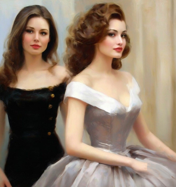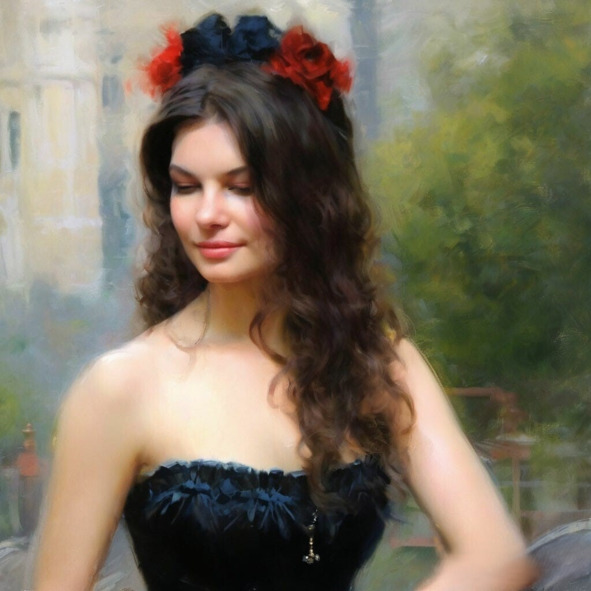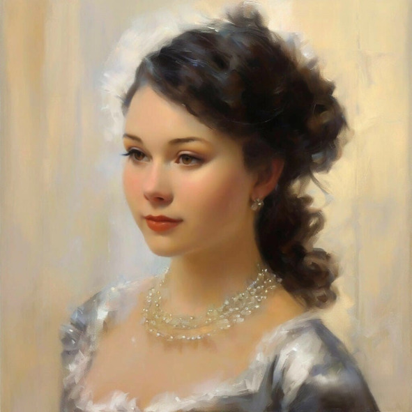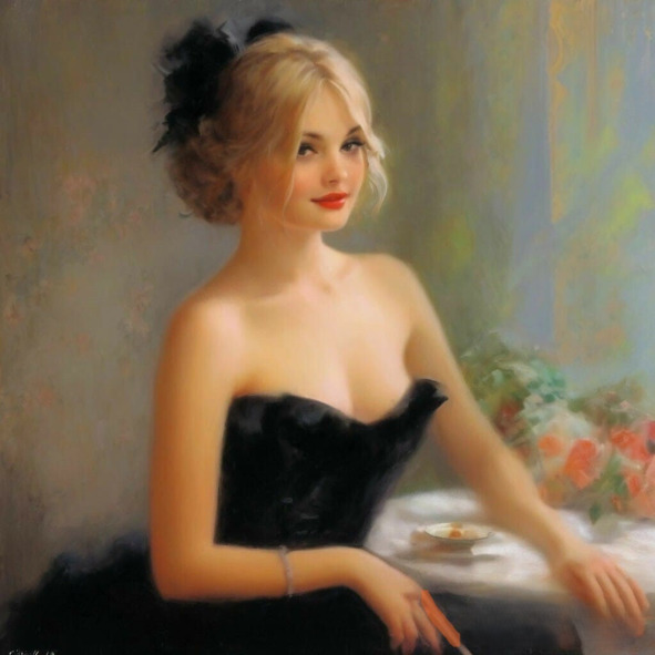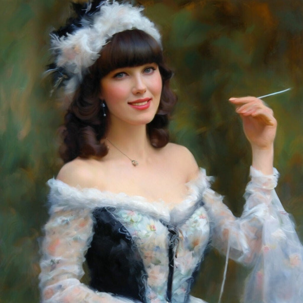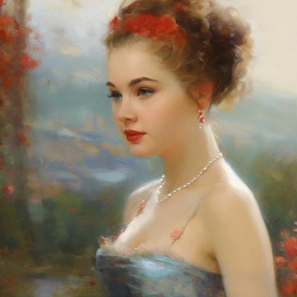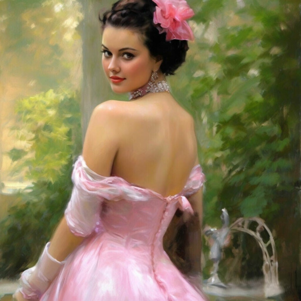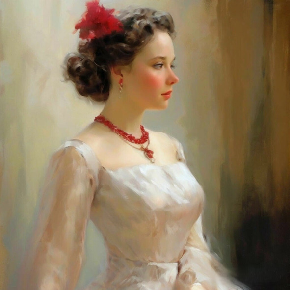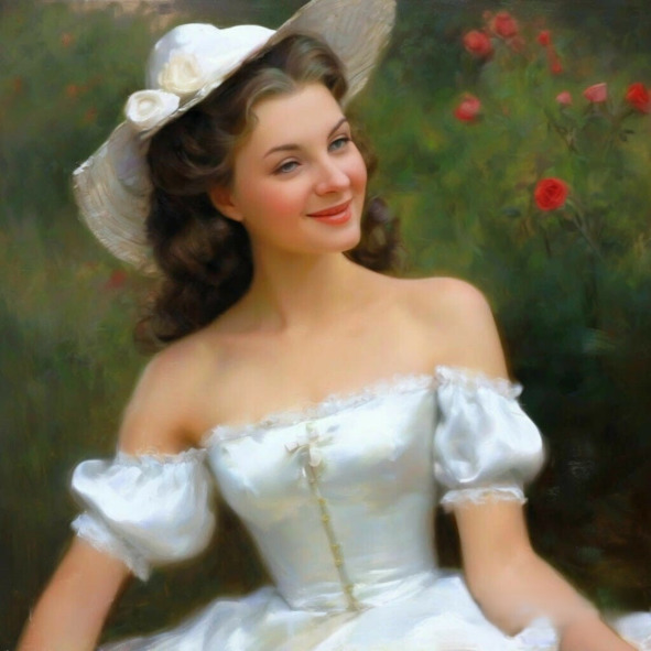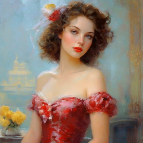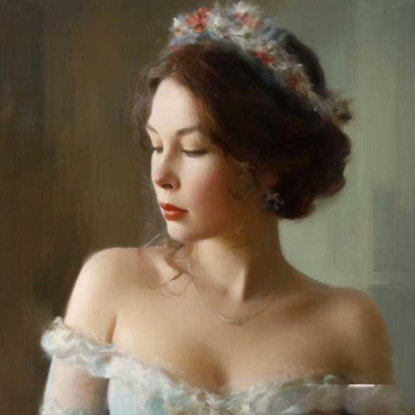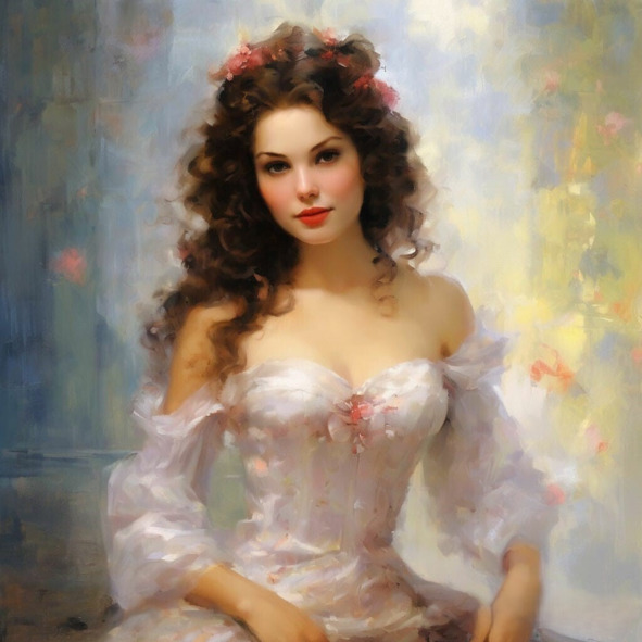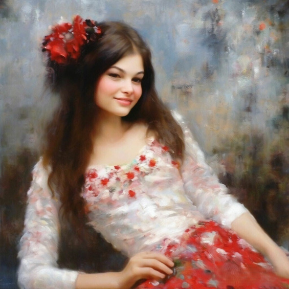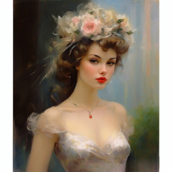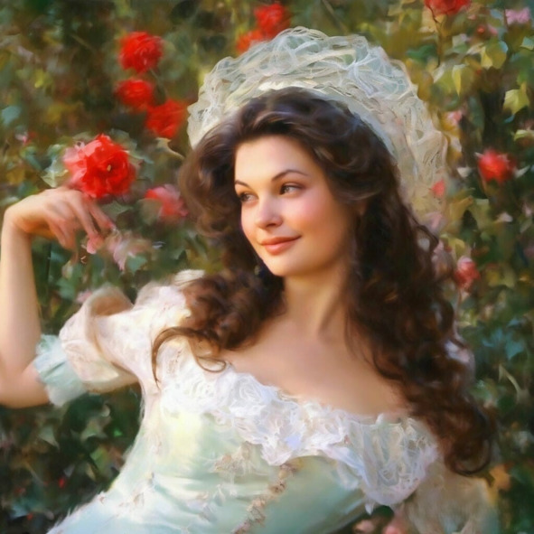 В первом из этих стилей «особые приметы», а, точнее – украшения портретов – это цветы и шляпки. Во втором – классические портреты, здесь много грудных и поясных портретов. Третий – тоже классический, красивый, яркий женский портрет.