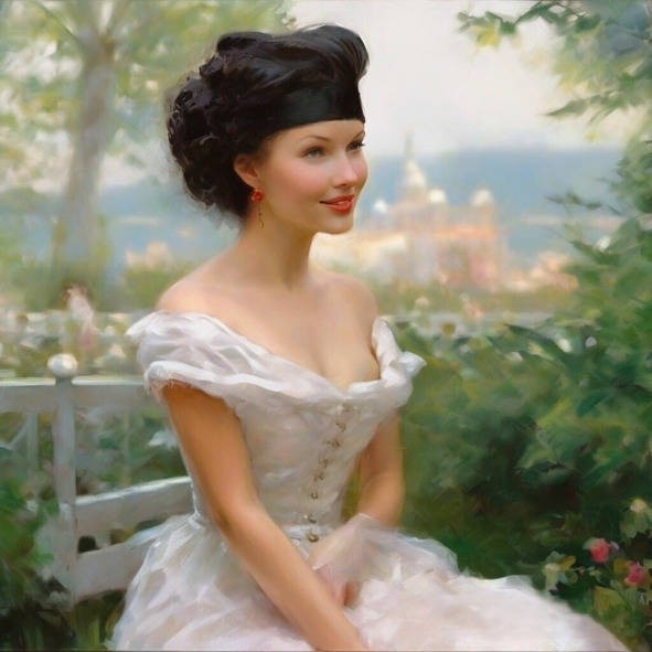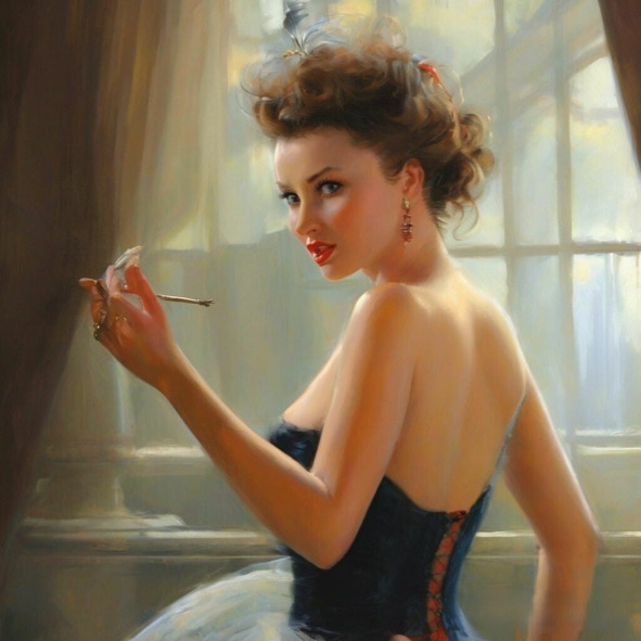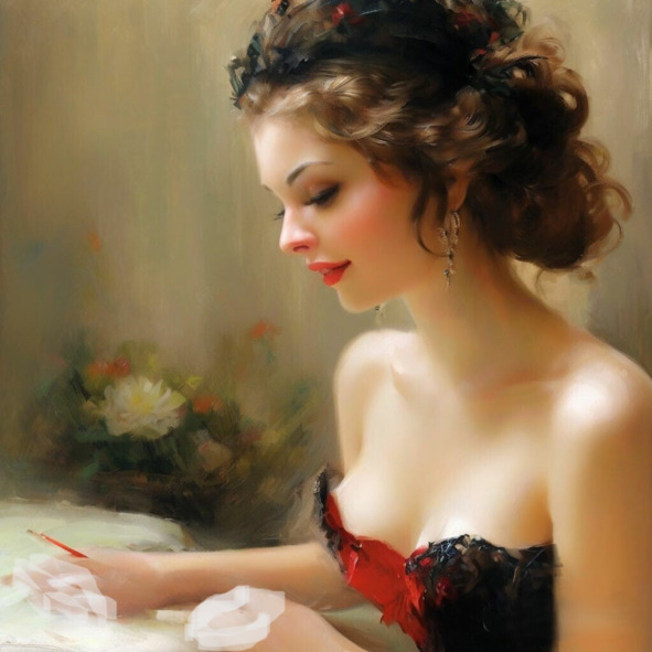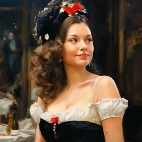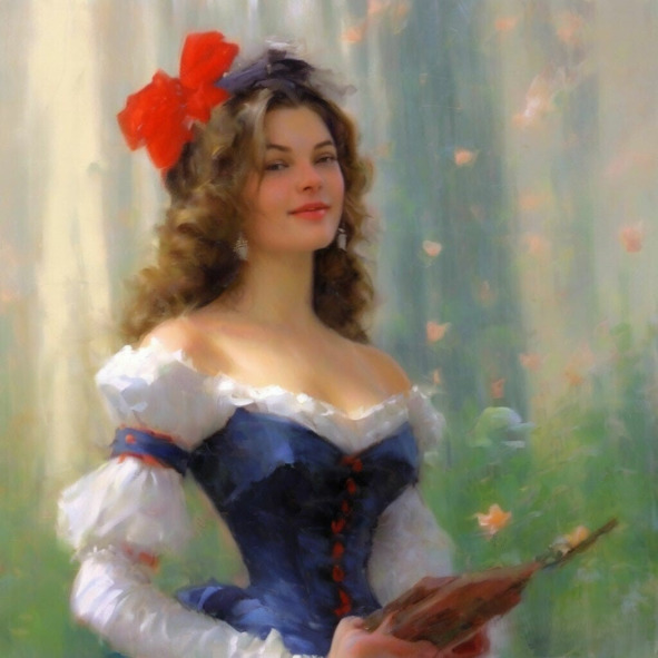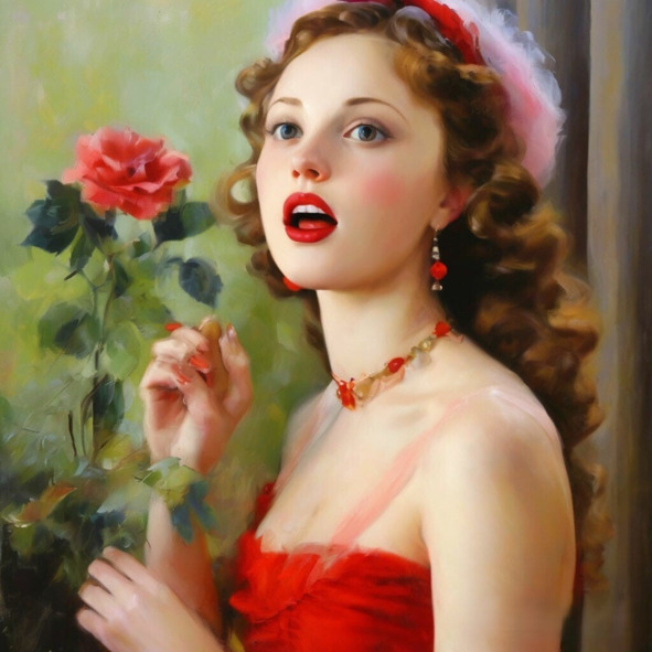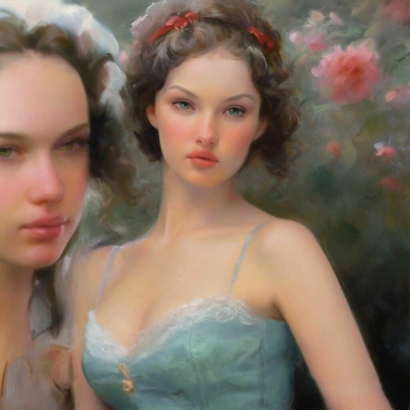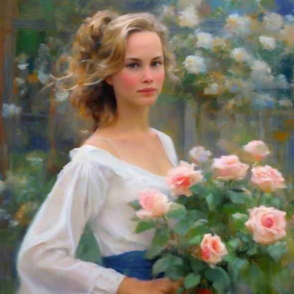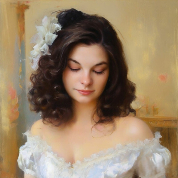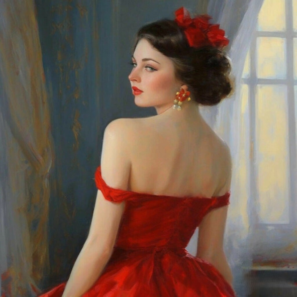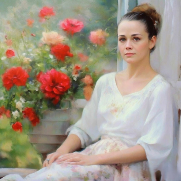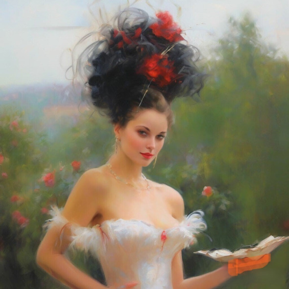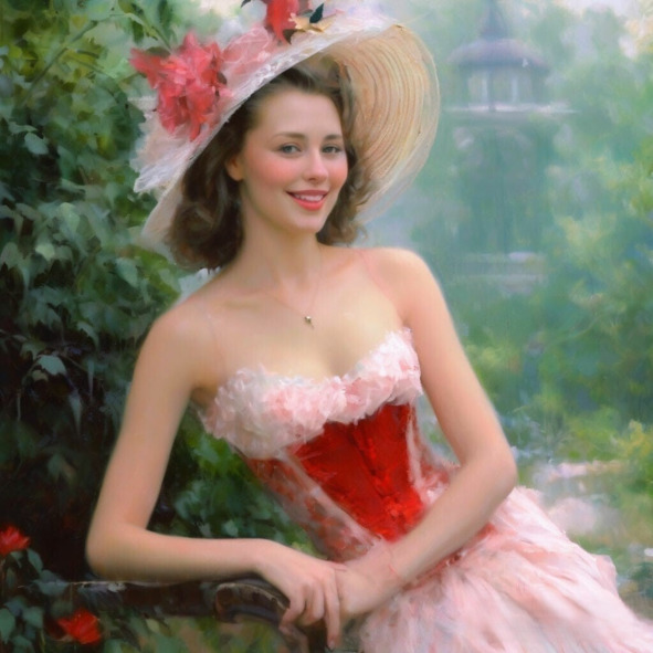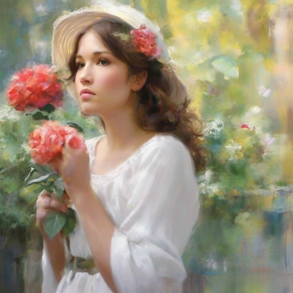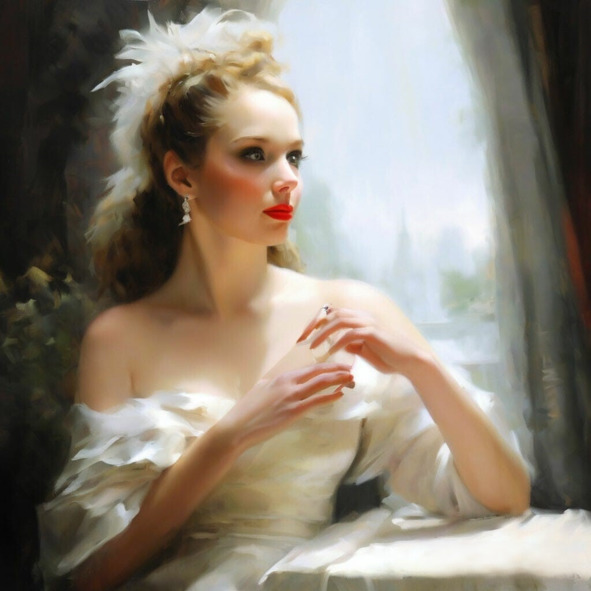 В первом из этих стилей «особые приметы», а, точнее – украшения портретов – это цветы и шляпки. Во втором – классические портреты, здесь много грудных и поясных портретов. Третий – тоже классический, красивый, яркий женский портрет.