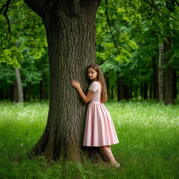 Тилия подошла к Дубу, положила ладошки на его кору, а после и вовсе обняла ствол Дуба.