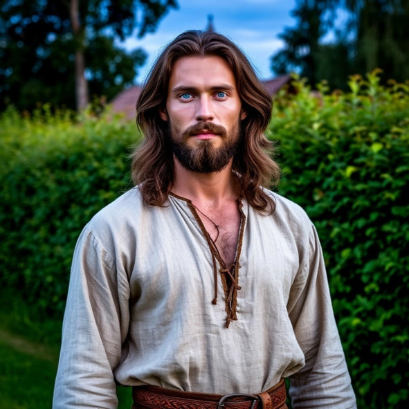 Некоторое время спустя к калитке подошёл мужчина неопределённого возраста, с аккуратной бородой, высокого роста, русыми волосами и голубыми глазами, в не совсем обычной рубахе – то ли конопляной, то ли льняной – девочка плохо различала эти ткани.