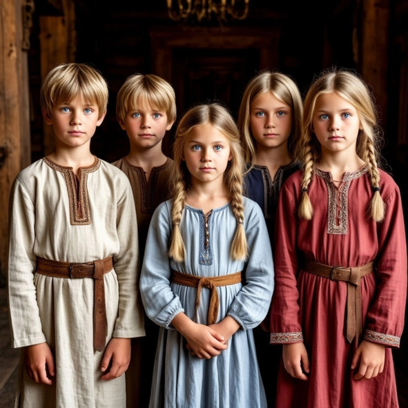 Дети были самого разного возраста примерно от 7 и до 16—17 лет на в вид, все белокурые и голубоглазые.