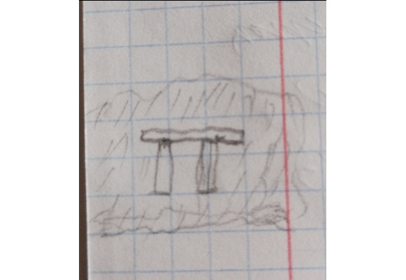 Тилия подошла к подножью холма и остановилась у его среза. И вдруг… Она как-то краем глаза заметила в склоне какой-то П-образный контур, как бы дверь или арку. Причём он был виден только под определённым углом зрения.