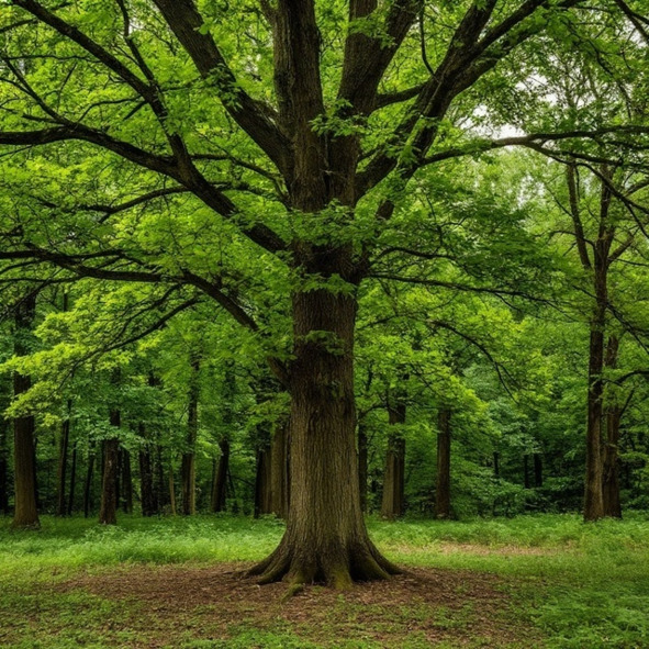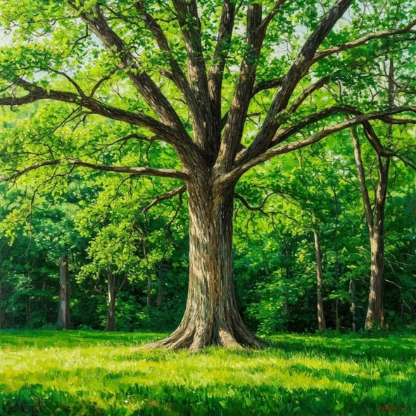 По дороге попалась лесная полянка, а на ней – Дуб раскидистый растёт.
