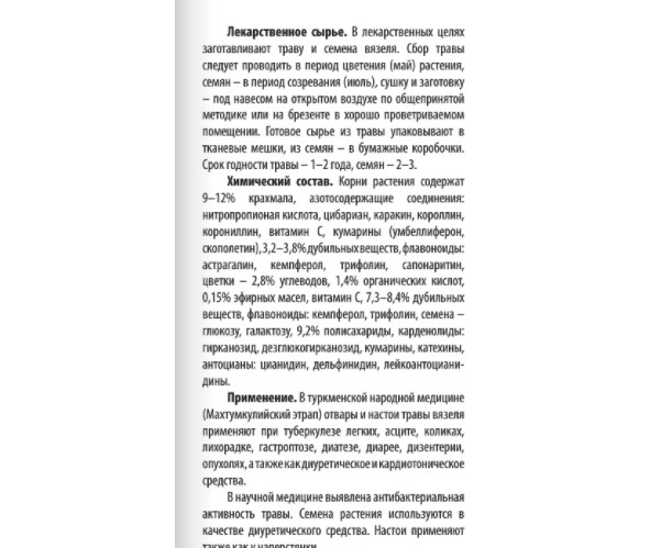 Другие варианты лечения вязелем по [11]: туберкулёз лёгких, асцит, колики, лихорадка, гастроптоз, диатез, диарея, дизентерия, опухоли, диуретическое; по [27]: трава и, особенно, семена – сердечное и гипотензивное.