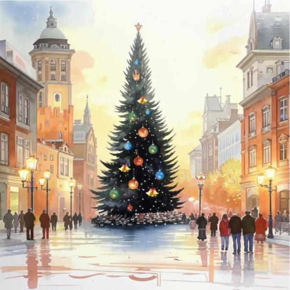 Уличные фонари, гордые своим новогодним убранством, выстроились в ряд вдоль дорог, указывая всем проходящим и проезжающим путь на центральную площадь, где горделиво возвышалось главное украшение города – огромная искусственная ель, увешанная стеклянными шарами и пёстрыми гирляндами из флажков. Вокруг неё неторопливо прогуливались взрослые и резвились довольные дети. То и дело раздавался восторженный визг и смех ребятишек, вновь и вновь без устали скатывающихся с большой горки, установленной поблизости от ёлки, и чирканье коньков по льду круговой конькобежной дорожки, протянувшейся по всему периметру площади.