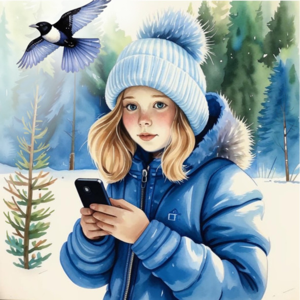 Щёлкнув пару снимков издали, девочка подошла к ёлке, чтобы сделать на её фоне красивое селфи. Повернувшись спиной к дереву, она навела на себя камеру смартфона, широко улыбнулась и ещё раз нажала кнопку фотоаппарата. Снова раздался щелчок, сверкнула фотовспышка… И тут из-под пушистой еловой лапы выпорхнула вспугнутая светом и резким звуком сорока, устроив девочке холодный снежный душ. В птичьем клюве что-то блеснуло: небольшой серебристый предмет, который Оля не успела разглядеть. Спасая свою собственность, сорока ринулась к соседнему дереву. Однако вещица явно была для пернатой слишком тяжела: выскользнув из клюва, она упала на еловую лапу и скатилась вниз по обледенелой хвое. Незадачливая птица взмыла вверх и приземлилась на декоративный кованый элемент уличного фонаря. Пару секунд она посидела там, нервно подёргивая хвостом и возмущённо стрекоча, будто выкрикивая в Олин адрес ругательства на своём сорочьем языке, а затем сорвалась с места и скрылась из поля зрения за соседним деревом.