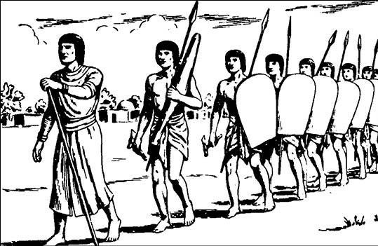 В период раннего царства в Египте сложилось постоянное войско, основу которого составляла пехота, вооруженная луками. Специальные грузовые суда доставляли воинов к месту сражения. На севере и юге страны были построены оборонительные сооружения, занятые военными гарнизонами, а внутренний порядок поддерживала полиция, состоявшая главным образом из жителей Северной Нубии – маджаев, – некогда покоренных египтянами.