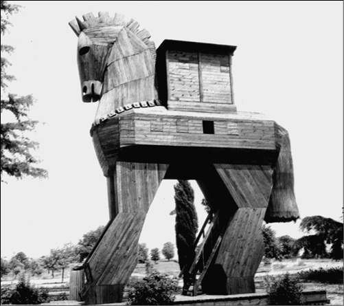 Возможно, у ахейцев была боевая башня на колесах, сделанная в форме коня и обитая конскими шкурами.