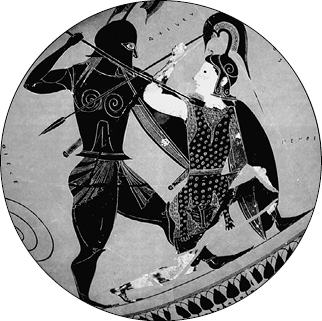 Ахилл убивает королеву амазонок Пентисилею. Фрагмент росписи греческой амфоры около 530 г. до н. э.