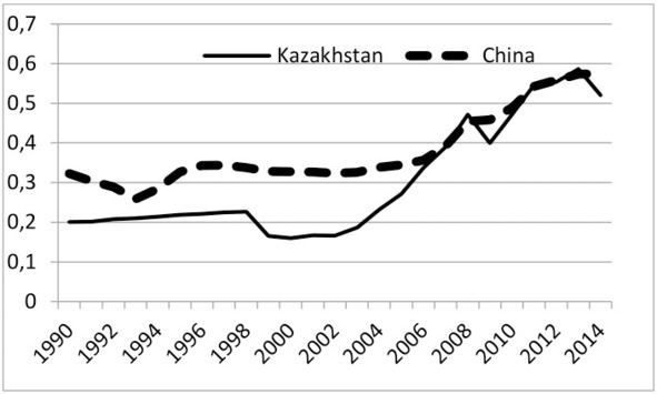 Казахстан же, едва оправившись от структурного кризиса 90-х, за три года, с 2004-го по 2007-й, привел паритет к уровню Китая.