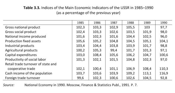 The dynamics of economic parameters in the USSR in 1985—1990 is indicative (Table 3.3).