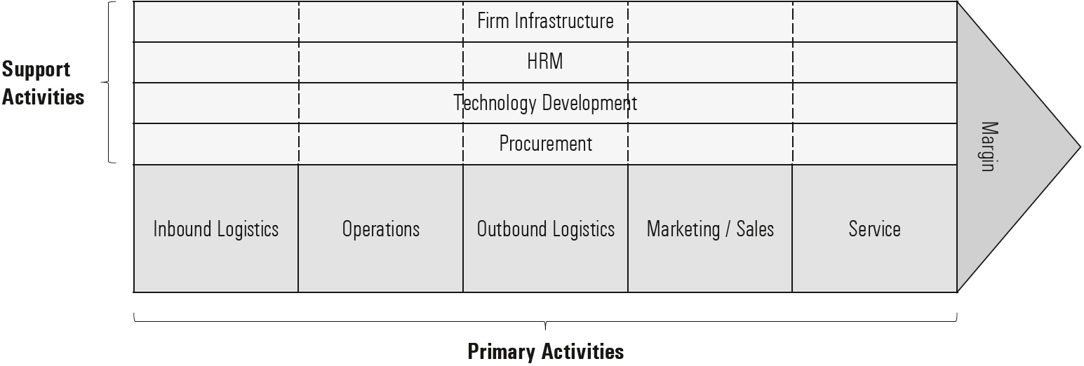 A process view of a company helps to optimize interactions between individual processes across functions. Porter’s (1985) basic process model of a company distinguishes primary and supporting activities. The former focus on the value creation process, while the latter establish the prerequisites (Figure 1-13).
