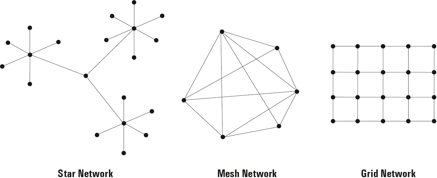 A special case of the mesh network is the grid network. This consists of a rectangular network whose elements are connected to their neighboring elements on all four sides. If one of the nodes in a grid network fails, it is possible to switch to parallel connections. This explains why grid networks are often used in road and traffic planning.