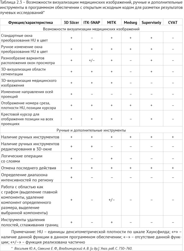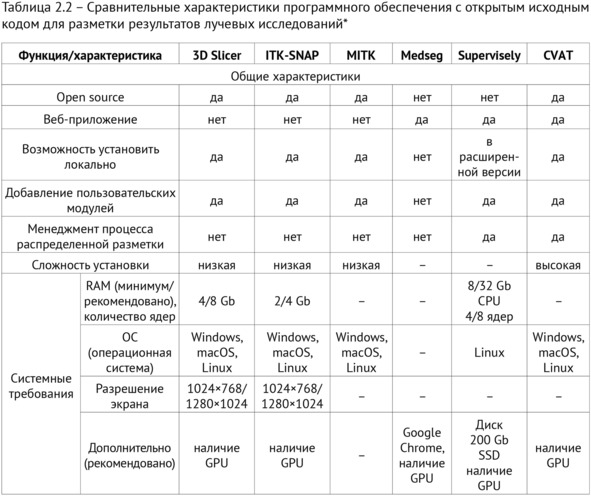 Далее приводится описание и специально проведенное сравнение программного обеспечения для разметки результатов лучевых исследований с открытым исходным кодом, впервые опубликованное в статье «Обзор современных средств разметки цифровых диагностических изображений»81.
