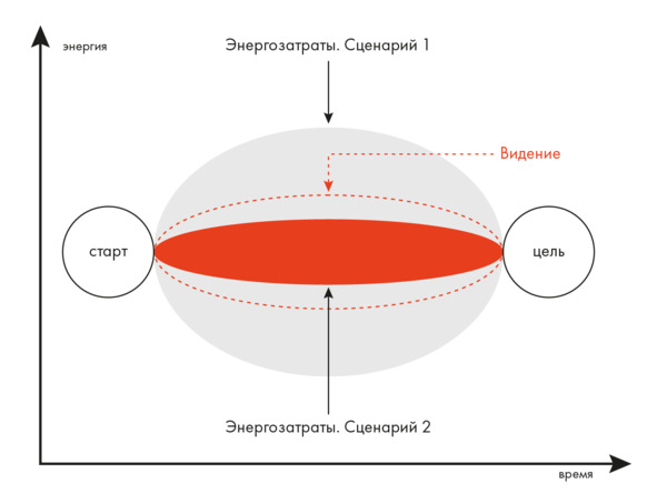 Рис 1.3 Видение уменьшает объем энергозатрат, которые компания потратит на достижение целевого состояния.