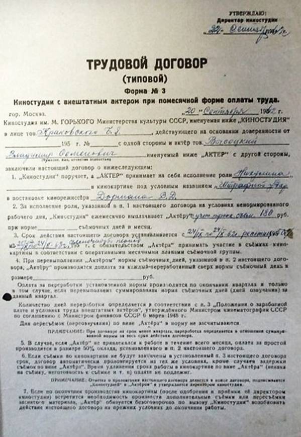 Фёдор Раззаков в своих опусах пишет: за съёмки в «Штрафном ударе» ему (Высоцкому) выписали гонорар в сумме 1034 рубля 24 копейки». Верить «нашему Феде», – себя не уважать. Такие деньги за роль второго плана в 1963 году были просто нереально фантастическими. В типовом договоре значилась сумма 180 рублей за один месяц, согласно утверждённой ставке (14). Снималась картина примерно шесть месяцев, включая монтаж, а сам контракт был заключён ещё в сентябре 1962 года. Понятно, что был процесс обучения, суточные и транспортные которые оплачивало государство. Суммарно Высоцкий мог быть задействован в съёмках максимум три месяца. Отдельно с актёрами, игравшими спортсменов, был составлен специальный репетиционный договор. Он оплачивался по куда меньшей ставке. С учётом занятости в разных сценах, сумма могла составлять примерно 500 рублей. За полгода это были просто копейки, но всё же лучше, чем ничего.