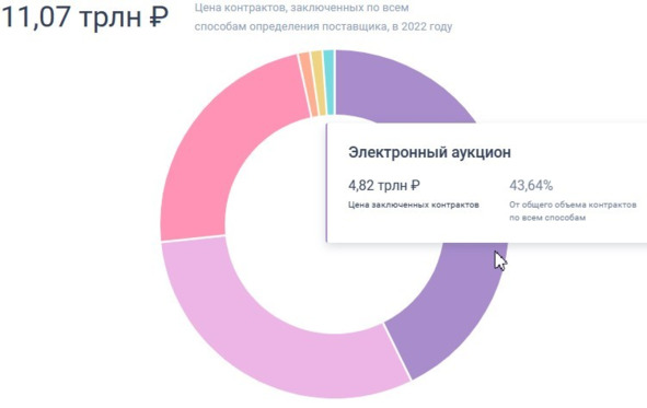 Согласно статистике ЕИС 44% закупок в 2022 году осуществлено именно посредством проведения электронного аукциона.