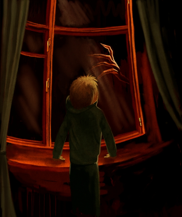 Фильм, тем временем, пытался его напугать. Герои – мама и сын – сидели в комнате, за окном – ночь, дождь, ветер. И вдруг – огромная лапа, тонкая, с длинными корявыми пальцами стучится в окно. Конечно же, ветка дерева.