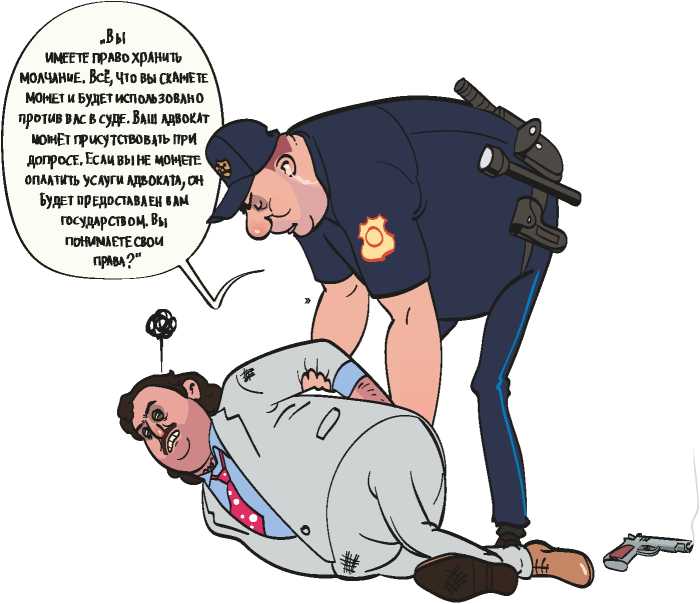 ТАИР – Ну, не совсем точно вы цитируете, но похоже. Это называется «правилом Миранды». Кстати, формулировка, которую представители закона должны произнести при аресте, не во всех штатах Америки одинакова. Но чаще всего звучит так: «Вы имеете право хранить молчание. Всё, что вы скажете, может и будет использовано против вас в суде. Ваш адвокат может присутствовать при допросе. Если вы не можете оплатить услуги адвоката, он будет предоставлен вам государством. Вы понимаете свои права?» То есть, ещё и убедиться надо, что человек хорошо понял то, что ему сказали.