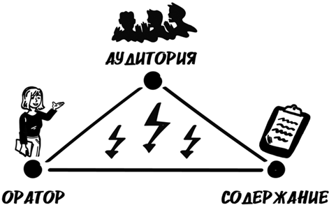 Механизм этот – ни что иное, как треугольник «Оратор-Содержание-Аудитория» (О-С-А). Оратор – источник энергии внимания. Он ее излучает и генерирует. Кроме того, он направляет энергию внимания через Содержание. Если эта энергия направляется под нужным углом, Аудитория ее улавливает, усиливает и отражает. Оратор получает усиленную Аудиторией отраженную энергию и запускает новый импульс. Хорошо отлаженный Треугольник Внимания трещит как трансформаторная будка. В нем столько энергии, что участники процесса не устают, а заряжаются. Более того, они готовы заряжать других и сами становятся источниками энергии. Время летит незаметно.