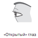 Тип глаза. «Открытый»: глаз широко открыт, взгляд направлен в упор на слушателя. Брови сильно изогнуты и опускаются к виску. Ресницы загнуты круто кверху.