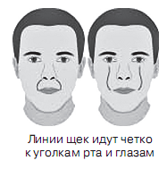 Благородные линии щек – это те носогубные складки, которые начинаются от кончиков ноздрей, плавной линией идут к уголкам рта, а дальше расходятся вниз полукругом под щеками. Внешне напоминают длинные тонкие усы, плавно спускающиеся к низу подбородка. Такие линии бывают у интеллигентов, занимающих высокое положение в обществе.