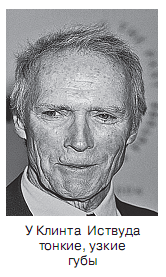 Скошенным ртом, когда один из уголков губ наклонен вниз, а другой приподнят, обладают хорошие ораторы. А по жизни они – душа любой у компании. Эти люди несколько склонны к преувеличению, но чаще только для создания театрального эффекта. Имея дело с таким человеком, важно помнить о его чувствительности и о том, что он постоянно использует свое остроумие, чтобы отгородиться и защитить себя. Им везет с деньгами, но они склонны тратить больше, чем могут себе позволить.
