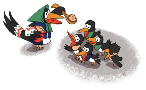 Сорока-воронакашу варила,деток кормила.Этому дала в ложку,Этому в поварешку,Этому в горшок,Этому в вершок. 1А этому не дала.Ты в лес не ходил,Ты дров не рубил,Ты печь не топил,Позже всех приходил.Творчество с детьми – это спасение