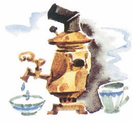 Разогрела медный, давно не чищенный самовар, поставила на стол, приглашает к нему девчушек, сама рядом садится.