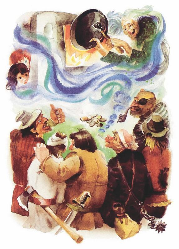 – Э-эх! – сказала Баба Яга. – Осталась у меня одна-единственная надёжа – мои самолучшие знакомцы, ребятки-разбойнички… Они хоть и пешие, но прыткие! Они всё равно сюда припожалуют.