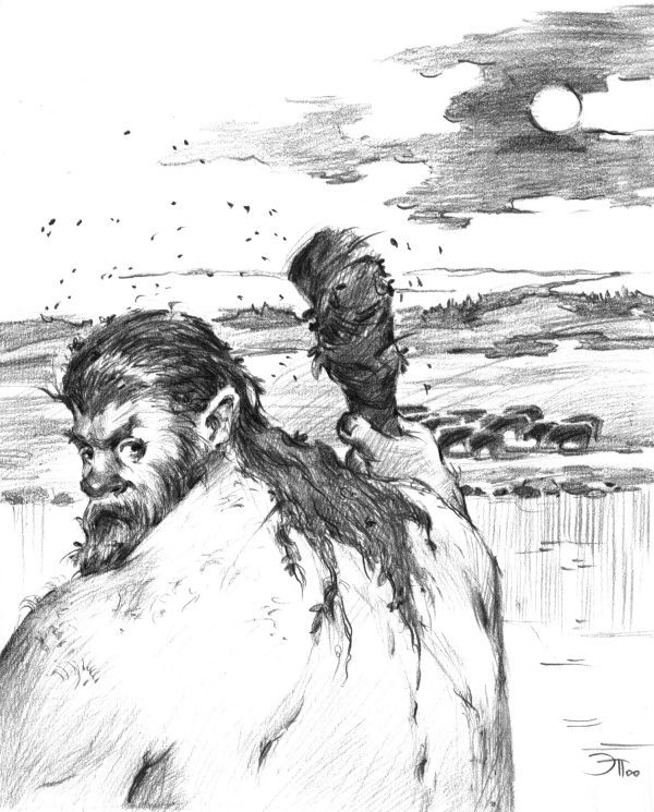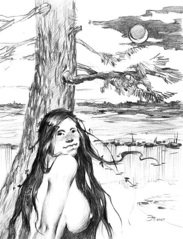 На лугу, под лунным светом, несколько обнаженных русалок с большими, свисающими грудями, взявшись за руки, пели свои странные песни. Но слишком близко подошел мужик к кустарниковой опушке, и был вскоре замечен. Сразу две русалки, распростерши руки, побежали к нему, смеясь схватили мертвой хваткой и вытащили на луг.