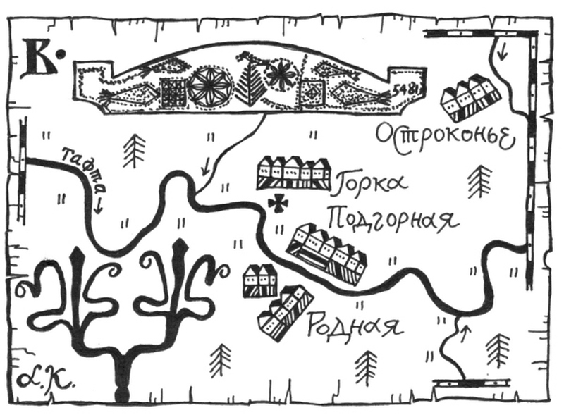 Лесная река Тафта протекает на западе Тотемского района, в 15 верстах севернее центра Погореловской волости. Около лесопромышленного поселка Красный Бор она сливается с Вожбалом и дает начало красавице Цареве – левому притоку Сухоны. В среднем течении Тафты стояли три деревни – Горка, Подгорная и Родная, а чуть в стороне еще одна – Остроконье. В XVII веке Тафтенский улусец входил в состав Царевской волости, а затем отошел к Погореловской. С середины 80-х годов прошлого века тафтенские деревни запустели. Остатки жителей были переселены в соседние населенные пункты…