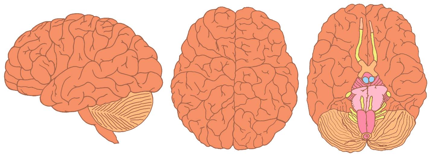 Под новой корой находится лимбическая система (условно отмеченная жёлтым цветом), которая занимает небольшую часть мозга. Она отвечает за инстинктивное поведение, включая половую активность, агрессию, страх и эмоции. Лимбическая система соединена с новой корой большим количеством связей и вместе они работают как единое целое.