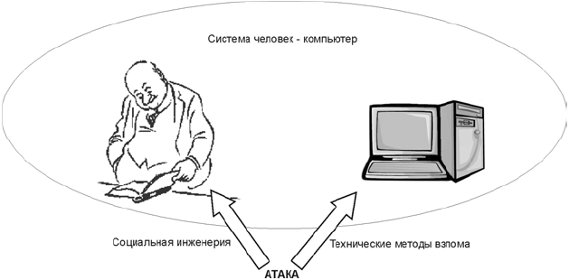 Задача хакера состоит в том, чтобы взломать компьютерную систему. Поскольку, как мы видим, у этой системы две составляющие, то и основных путей ее взлома соответственно два. Первый путь, когда "взламывается компьютер", мы назовем техническим. А социальной инженерией называется то, когда, взламывая компьютерную систему, вы идете по второму пути и атакуете человека, который работает с компьютером. Простой пример. Допустим, вам нужно украсть пароль. Вы можете взломать компьютер жертвы и узнать пароль. Это первый путь. А пойдя по второму пути, вы этот же самый пароль можете узнать, попросту спросив пароль у человека. Многие говорят, если правильно спросить.