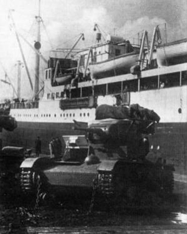 В сентябре 1936 года советский грузовой теплоход «Комсомол» бросил якорь на рейде испанского порта Картахена. Из его трюмов было выгружено 50 танков Т-26, запасные двигатели к ним, боеприпасы, горюче-смазочные материалы. С танками приплыли 30 советских инструкторов во главе с полковником Кривошеиным.