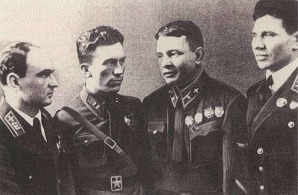 Летчики-добровольцы в Китае. Справа налево: Ф. Полынин, П. Рычагов, А. Рытов, А. Благовещенский.