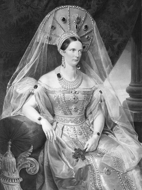 Высший свет Москвы долго обсуждал, как посетившая Белокаменную в 1831 году государыня «была прелестно одета, вся в белом и залита бриллиантами и бирюзами».[15]