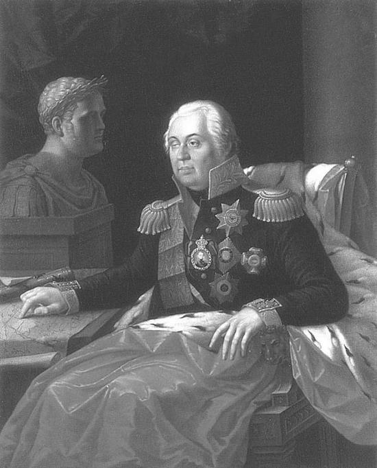 Горьким стало возвращение Александра I в Петербург в конце 1805 года. Однако придворные льстецы и тут не утерпели от не совсем уместного скорейшего изъявления верноподданнических чувств. Не прошло и недели, как на собрании 13 декабря кавалерская дума Св. Георгия стала просить государя возложить на себя знаки этого военного ордена, причем сразу первого класса. Их тут же поднес монарху прозванный «Бриллиантовым князем» из-за неумеренной любви к сверкающим алмазам канцлер российских орденов Александр Борисович Куракин, весьма гордившийся обладанием звездой престижного прусского ордена Чёрного Орла, завещанной «верному другу» самодержцем Павлом I, получившим ее в Берлине из рук самого «короля-солдата». Ассистировал любимцу отца нынешнего государя старший кавалер, князь Александр Александрович Прозоровский, в далеком 1778 году награжденный второй степенью Георгиевского ордена за удачное выполнение «всей порученной ему» Екатериной II «секретной комиссии» и уничтожение «всех неприятельских действий» в Крыму Именно этому престарелому военачальнику, которому 30 августа 1807 года Александр I пожалует за заслуги фельдмаршальский жезл[57], его сотоварищи доверили посвятить молодому царю льстивый доклад.