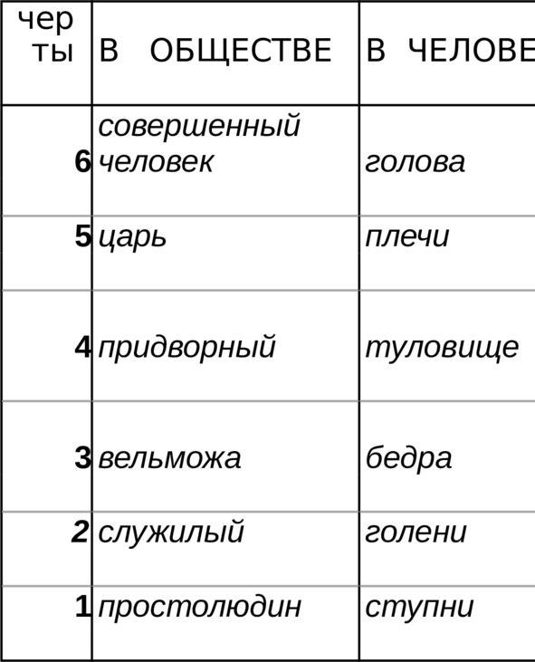 Таблица 2 – Соотношение черт гексаграмм с другими элементами