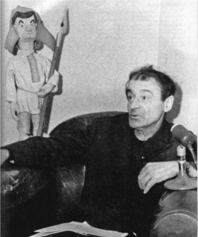 М. Светлов со своей копией – куклой Мальчиш-Кибальчиш. Такой подарок сделали ему к 60-летию артисты кукольного театра. 1963