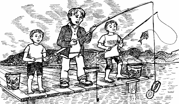 На берегу сидели мальчишки, они смеялись и бросали в воду камушки. Подойдя к ребятам, Колька сказал, что они только что приехали, и спросил, хорошо ли тут клюет. Хотя рыбачить ему почему-то расхотелось. В ответ мальчишки рассмеялись.