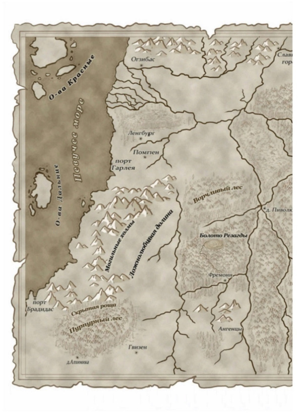 На мостиках, перекинутых через реку Бья́нве, играли менестрели. Мелодии, выходящие из-под их умелых пальцев, разносились по улицам, обволакивая каждого слушателя теплом летнего солнца, прохладой осенних туманов, ароматами бескрайних лугов и мерцанием далёких звёзд. Кружась, музыка то взмывала вверх, к свисающим с бирюзового неба клочьям облаков, то разбивалась на тончайшие осколки и резала души, иногда она лучилась как зарница или порхала бабочкой, а иногда плыла словно рыба, а то и жалила как оса. Часто это звучание разбавлялось тоскливыми голосами певцов, которые, разливаясь приторно-сладким журчанием, словно мёд, склеивали сердца слушателей.