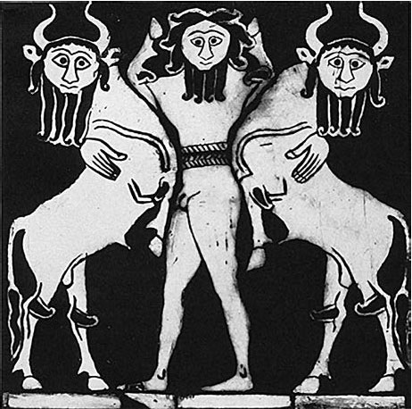 Ил. 6. Укротитель чудовищ (необработанные ракушки и ляпис лазурный). Шумер, Ирак, 2650–2400 гг. до н. э.