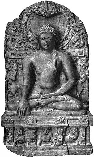 Ил. 7. Будда Шакьямуни под Деревом Бодхи (резьба по аспидному сланцу). Индия, конец IX – начало X в. н. э.